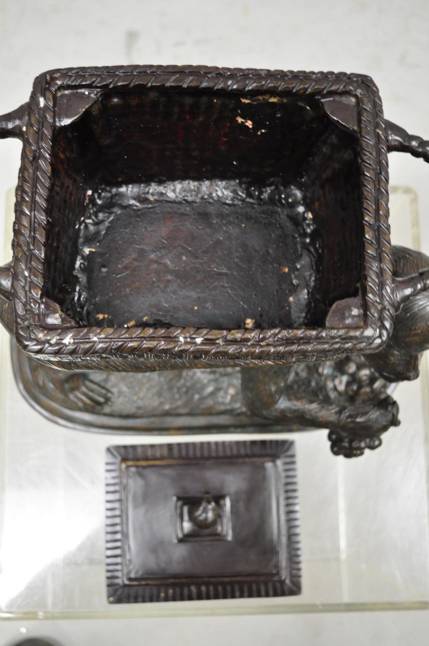 Maitland Smith Cast Bronze Monkey W Lidded Basket Planter Pot Statue Sculpture For Sale At 1stdibs